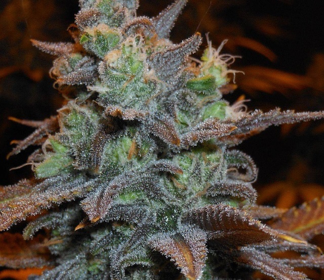 Bellísima planta de tallos rojos y cogollos morados. Tiene un alto crecimiento y la clásica forma ramificada de candelabro. En exterior se puede recoger a mediados o finales de septiembre. En su genética tiene predominancia índica. Sus semillas son tienen la peculiaridad de estar recubiertas de forma natural por una finísima capa negruzca.